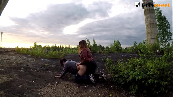 Публично ебу своего мужа на крыше возле железной дороги. Страпон использовала сперму как смазку
